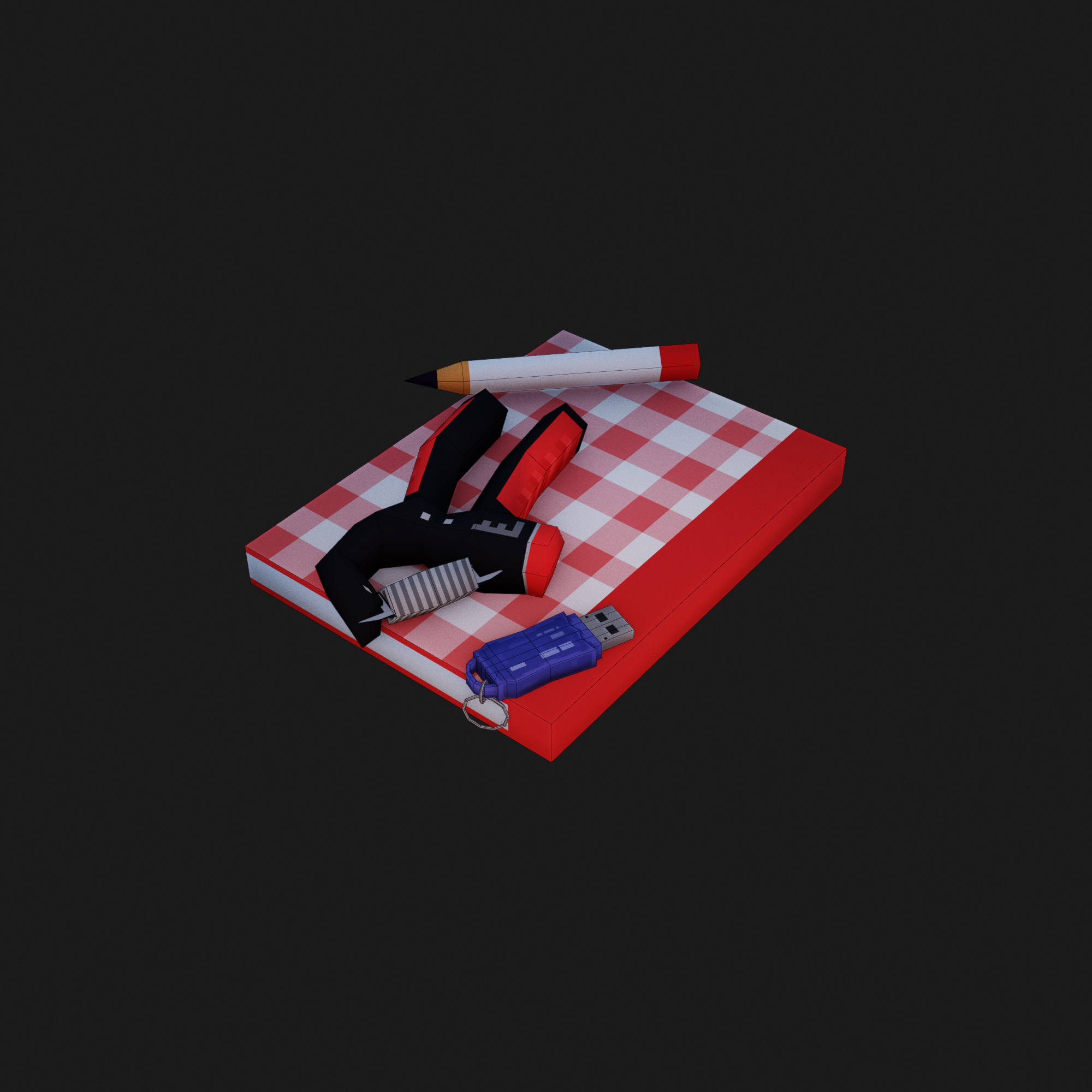 - Random clutter (notebook, pencil, handgrip, usb 2.0 flash drive) [64x]